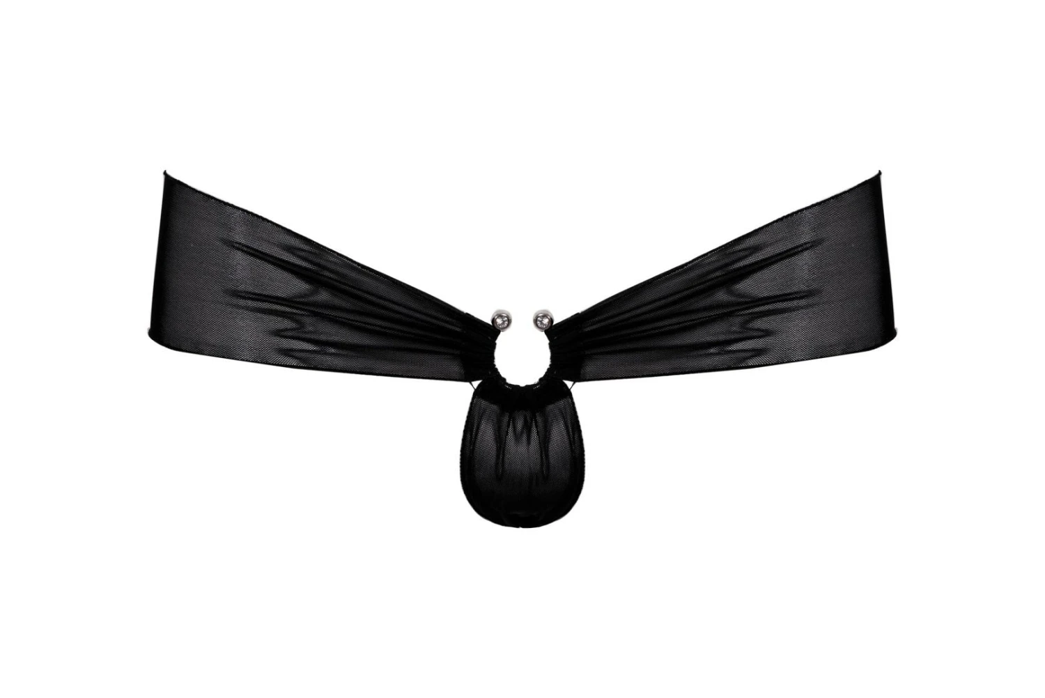 En bas, un micro-string ultra flatteur comprend une large bande de voile qui souligne votre taille galbée. Si vous prévoyiez une soirée intime, cet ensemble deux pièces très coquin est fait pour vous !