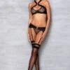 Cet ensemble deux pièces alléchant est conçu pour mettre votre corps en valeur. Le soutien-gorge ouvert sexy comporte des armatures pour un ajustement flatteur, avec un voile transparent au cœur de la poitrine tandis que le reste est composé de bandes invitantes qui épousent vos courbes à tous les bons endroits.
