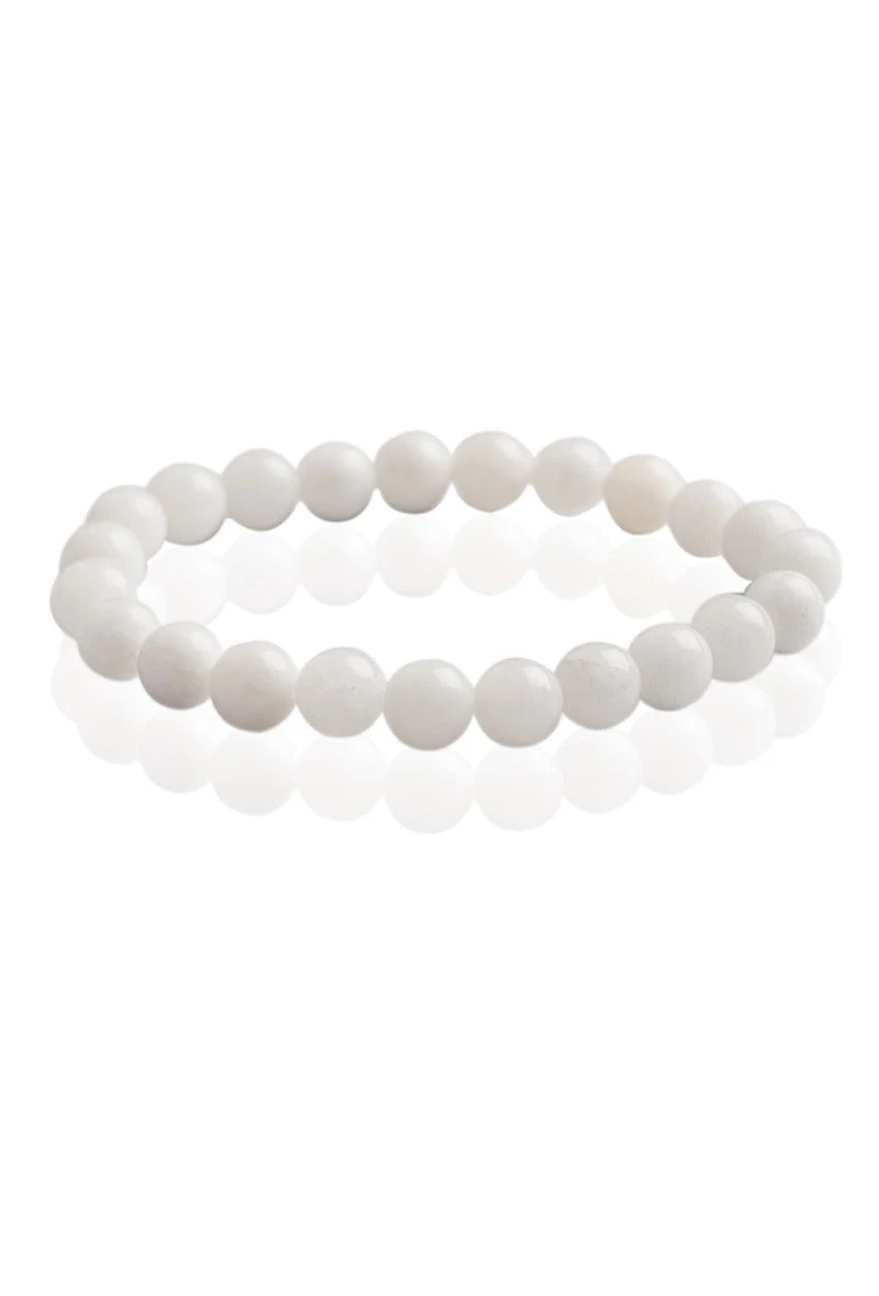Voici le bracelet en pierre de lune naturelle ! Cette belle pièce est parfaite pour les poignets mesurant de 18 à 20 cm. Il présente des pierres naturelles en boules de 8 mm de diamètre, avec une teinte blanche qui varie entre laiteuse et transparente.