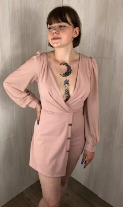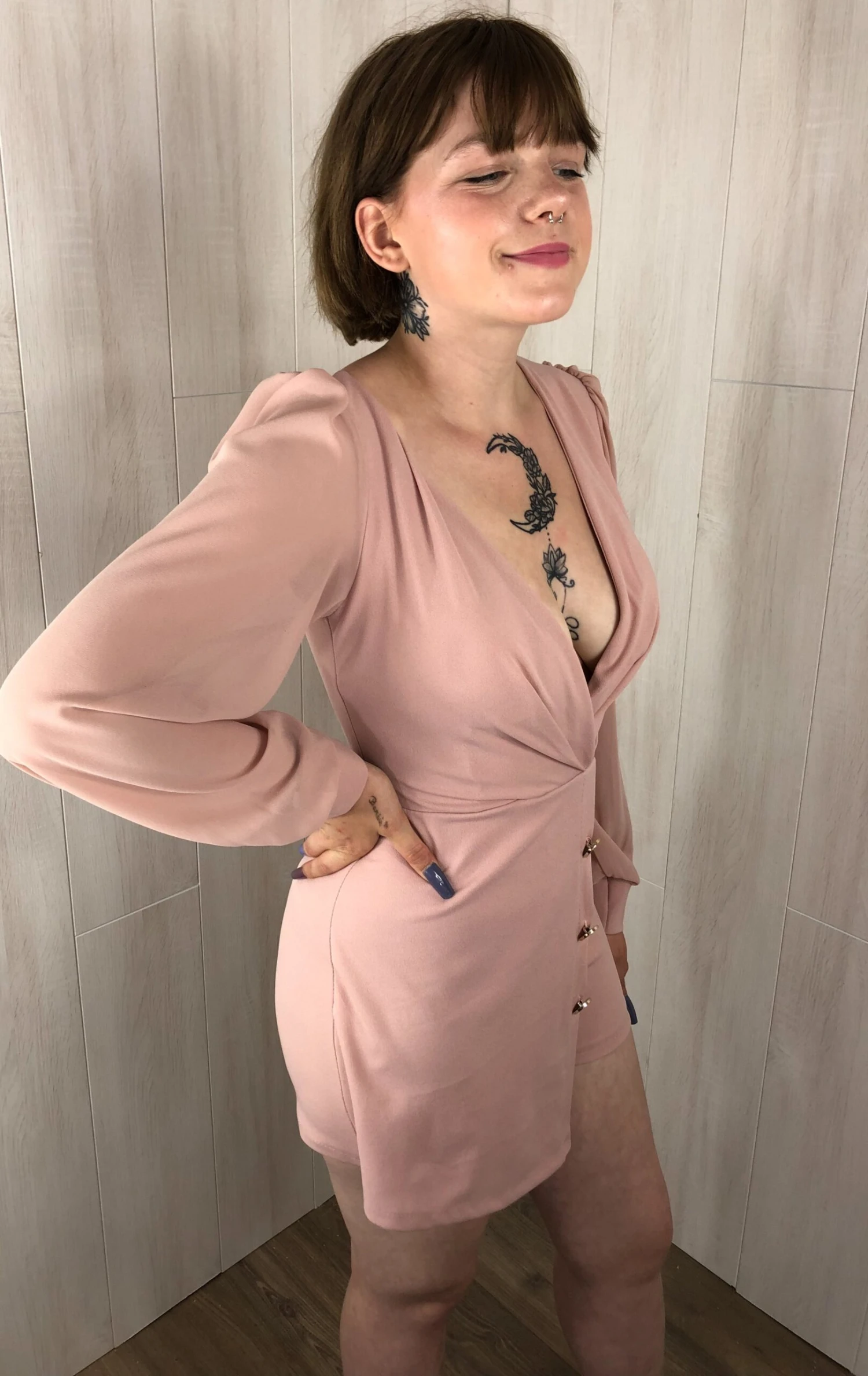 DĂ©colletĂ© prononcĂ© et cache cĹ“ur au menu de cette combinaison au look tailleur, ici en coloris Ă©cru, vous allez retrouver cette combinaison courte dans d’autres coloris sur notre site.