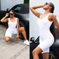 Combinaison courte en coloris blanc que vous trouverez aussi en noir sur notre site.