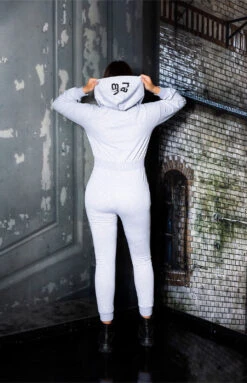 Une combinaison Grise avec capuche que vous allez retrouver en coloris noir ou en beige sur votre site de vĂŞtements pour femme ou dans notre boutique Ă Douai.