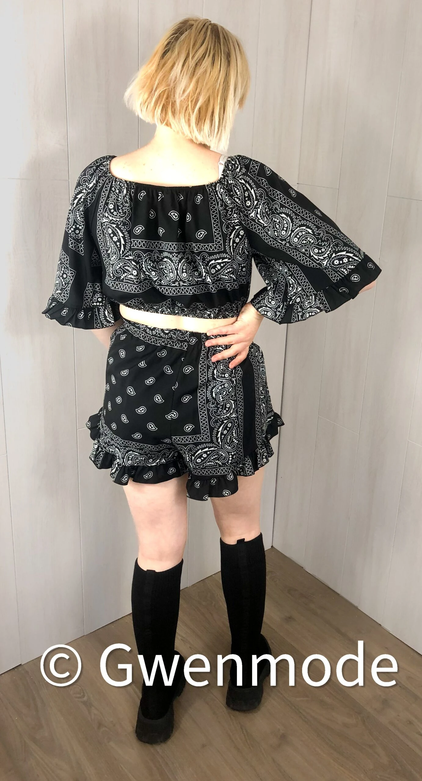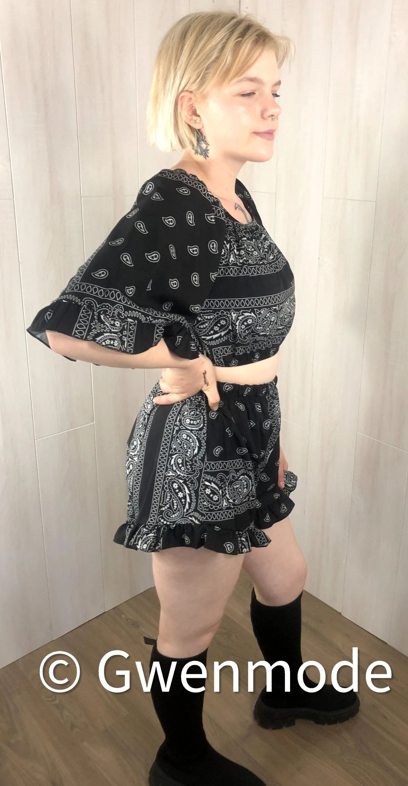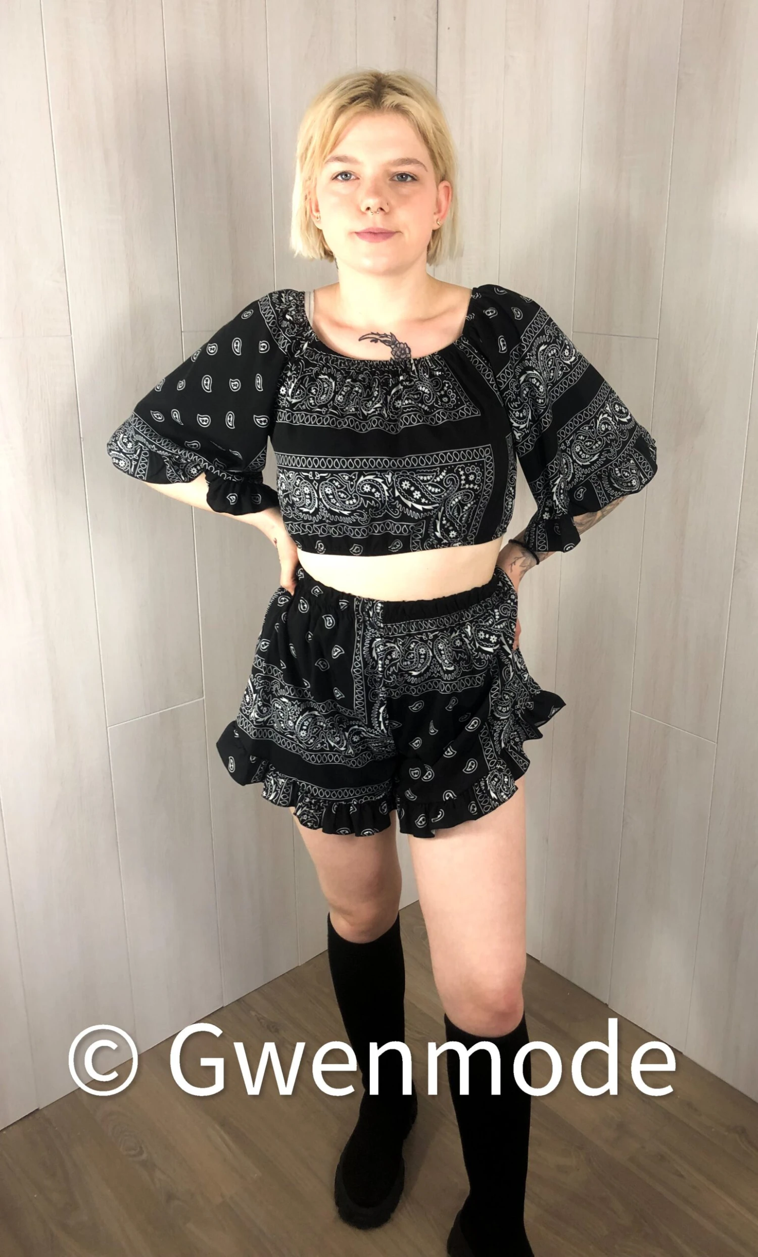 On va trouver des volants aussi bien sur le bas du short que sur les manches courtes du top.