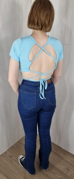 Le haut des jambes est plus regular et va venir mouler les cuisses. Les fesses seront bien maintenues et mises en valeur. La coupe du Jean est bien féminine.