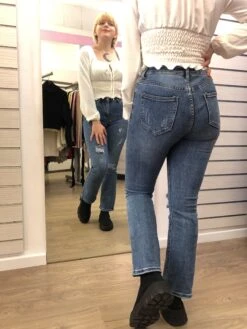 Jean style usé en coloris classique bleu.