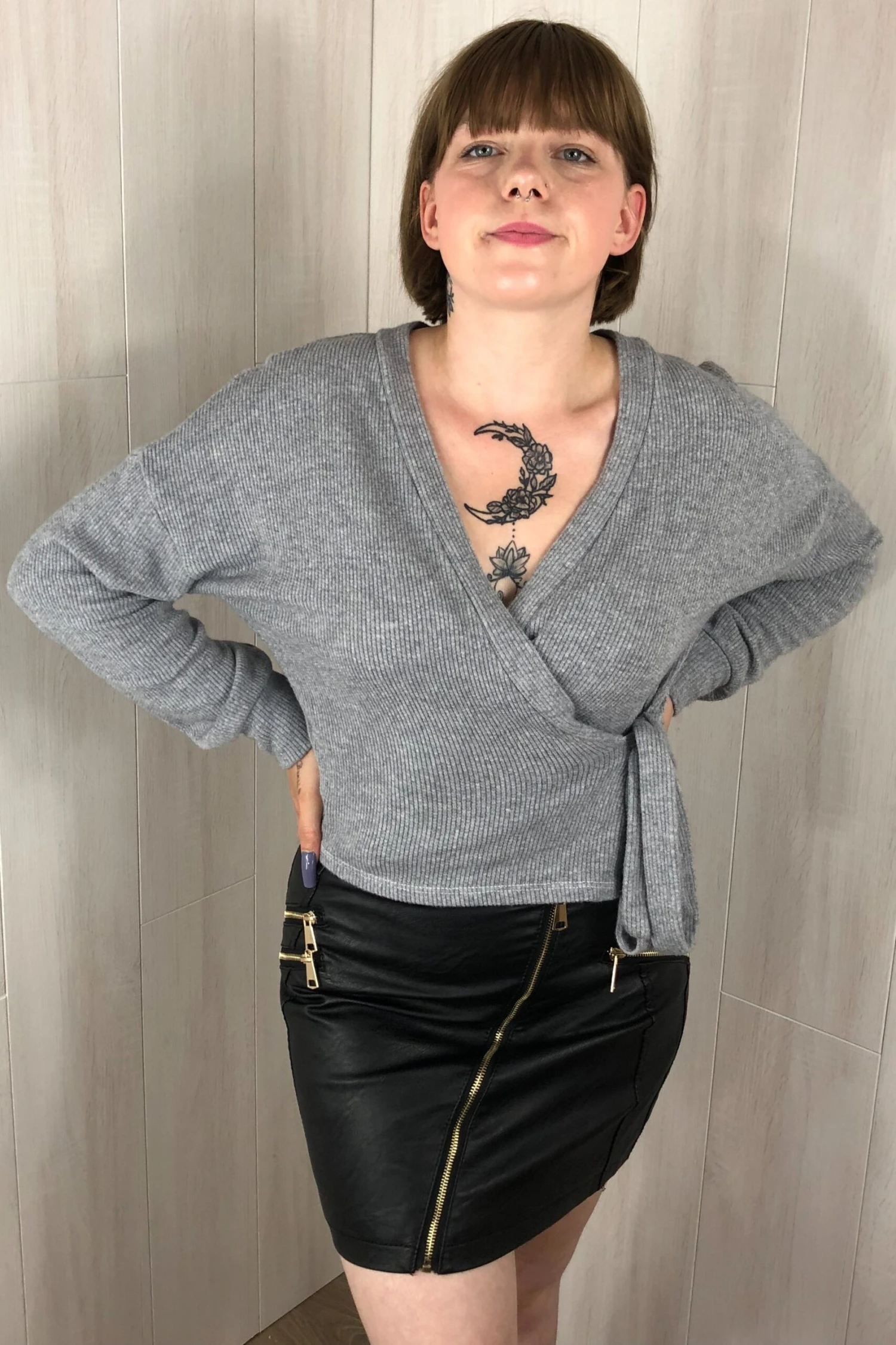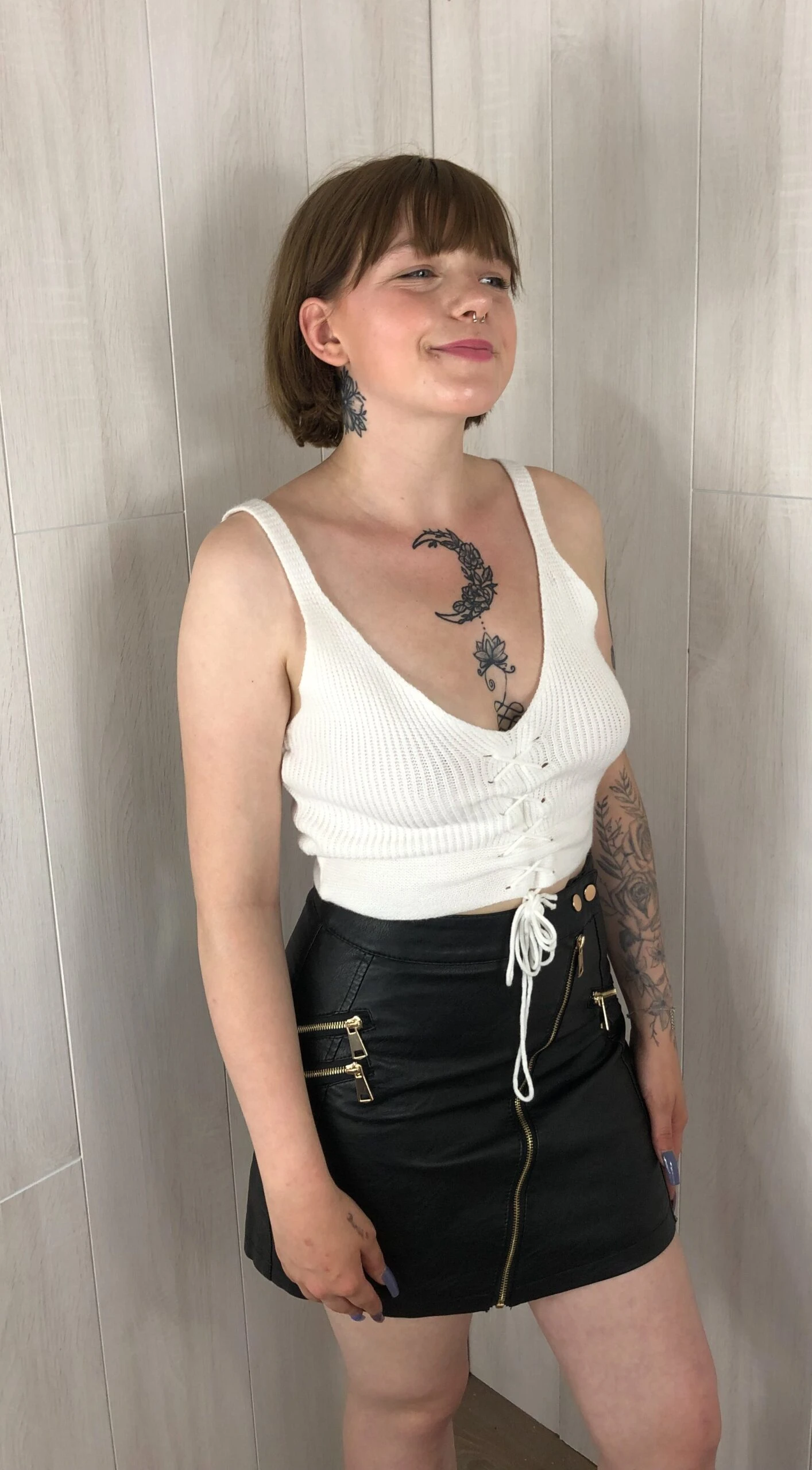 Fermeture transversale sur la longueur de la jupe. Le côté diagonale va amplifier la coupe féminine de la jupe simili cuir.