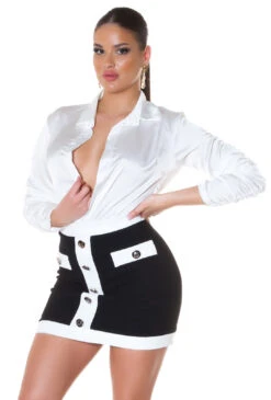 Une magnifique jupe courte avec un beau contraste de noir et de blanc.