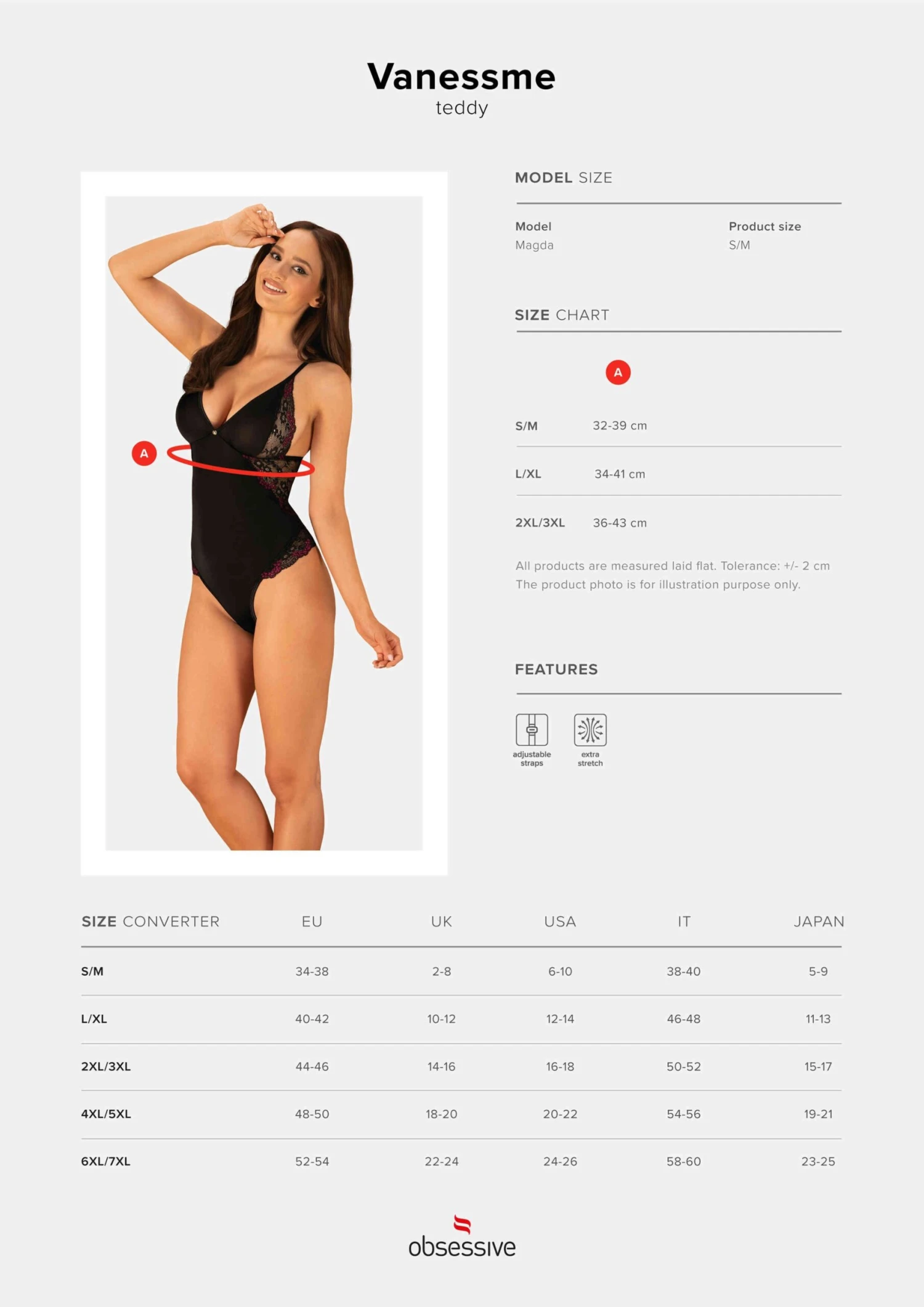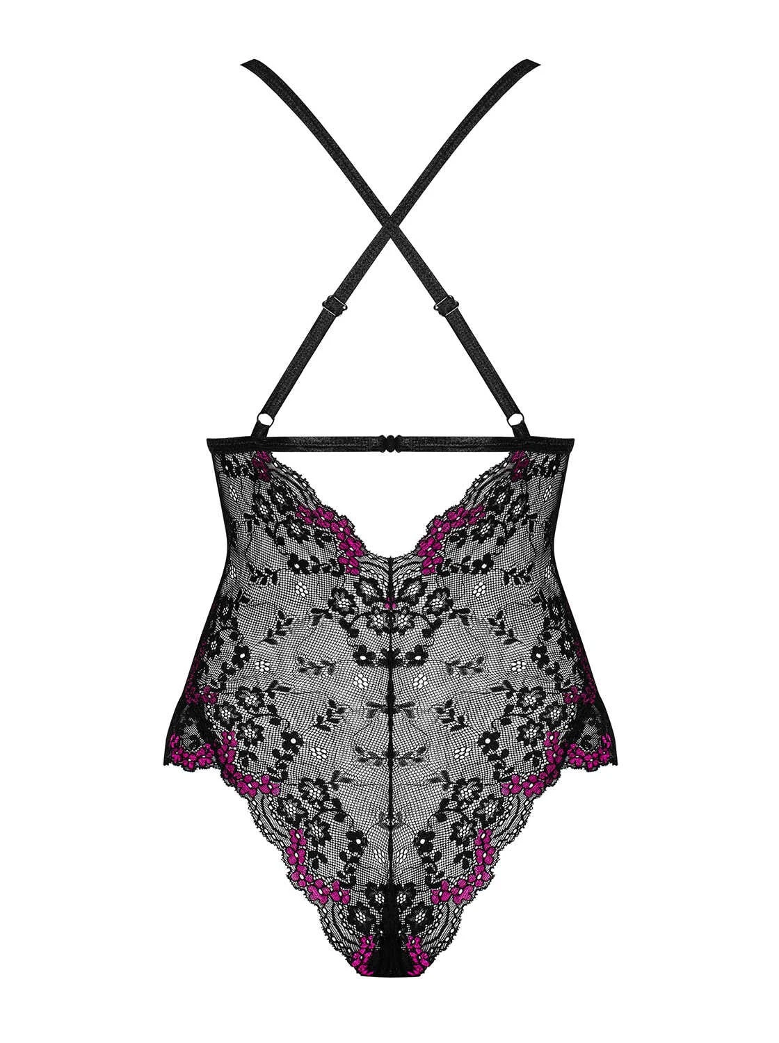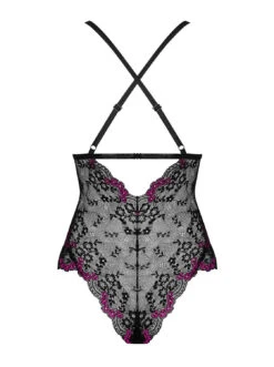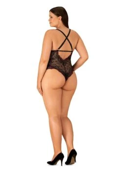 L’arrière ne ressemble pas Ă l’avant, il est fait intĂ©gralement de dentelle fine qui va jouer de la transparence et donner Ă ce body toute sa sensualitĂ©. Les bretelles du body lingerie noir se croisent sur l’arrière, elles sont Ă©videmment rĂ©glables pour un ajustement impeccable de votre body.
