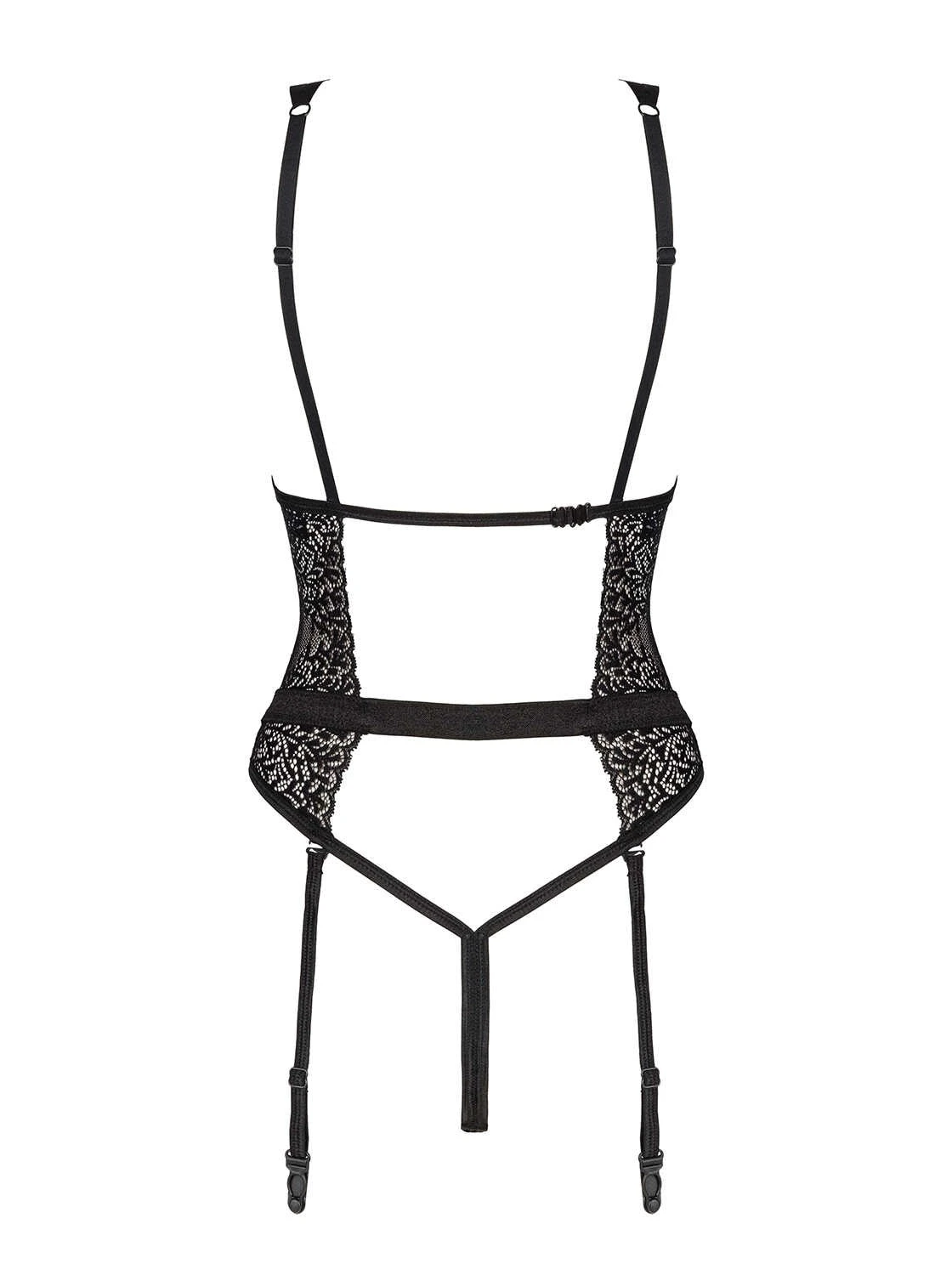 Body noir taillé comme une guêpière de la marque de lingerie coquine et sexy Obsessive.
