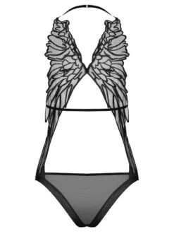 Montrez lui que vous êtes prête à jouer avec ce body sexy. Corps en fine maille transparente. Aile de papillon dans le haut du dos. Arrière coupé façon culotte string.
