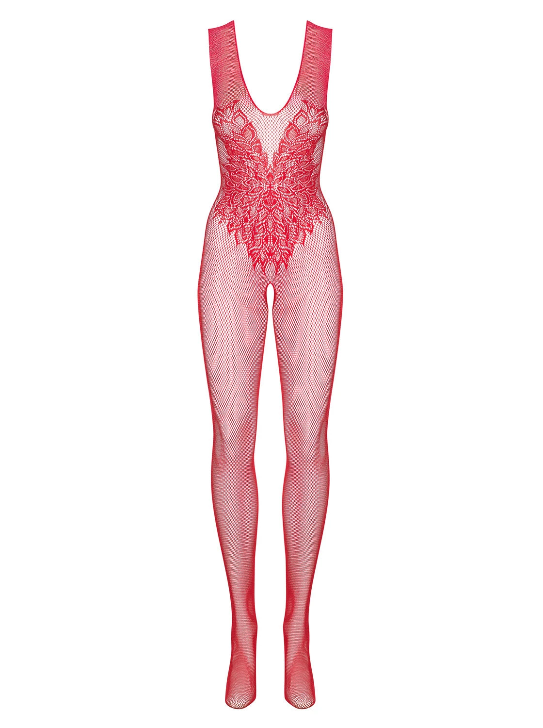 Un rouge infernal sur ce bodystocking en maille transparente qui laissera apparaitre votre corps sous une fine maille sexy.