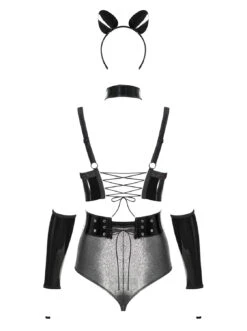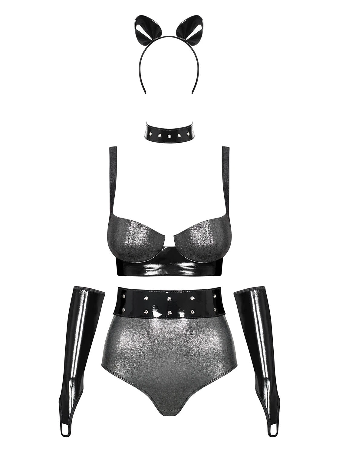 Cet ensemble de lingerie coquine est fabriquĂ© Ă partir de 90% de polyamide et de 10% d’Ă©lasthanne pour offrir un toucher doux et un ajustement parfait. Le serre-tĂŞte oreilles est quant Ă lui composĂ© de 45% de PVC, 40% de plastique, 10% de mĂ©tal et 5% de polyester.