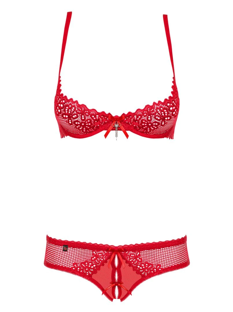 Ensemble sexy rouge de la marque Obsessive. Un ensemble sexy que vous retrouverez aussi en coloris blanc sur notre site en vous rendant sur la page de la lingerie blanche coquine.