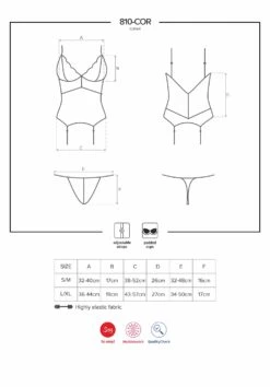 Comme pour toutes les guêpières sexy, le porte jarretelles est intégré, la guêpière se portera donc avec des bas.
