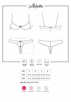 Le soutien gorge de cet ensemble de lingerie coquine blanche ne couvre que partiellement la poitrine avec des demi bonnets qui vont juste maintenir les seins sans les cacher. Ils sont pourvus d’une armature pour bien les tenir en place. Les bretelles du soutien gorge sont rĂ©glables comme un soutien gorge classique. Attache dans le dos elle aussi classique et rĂ©glable.