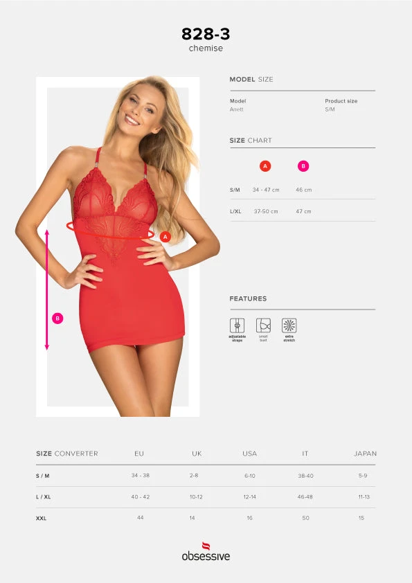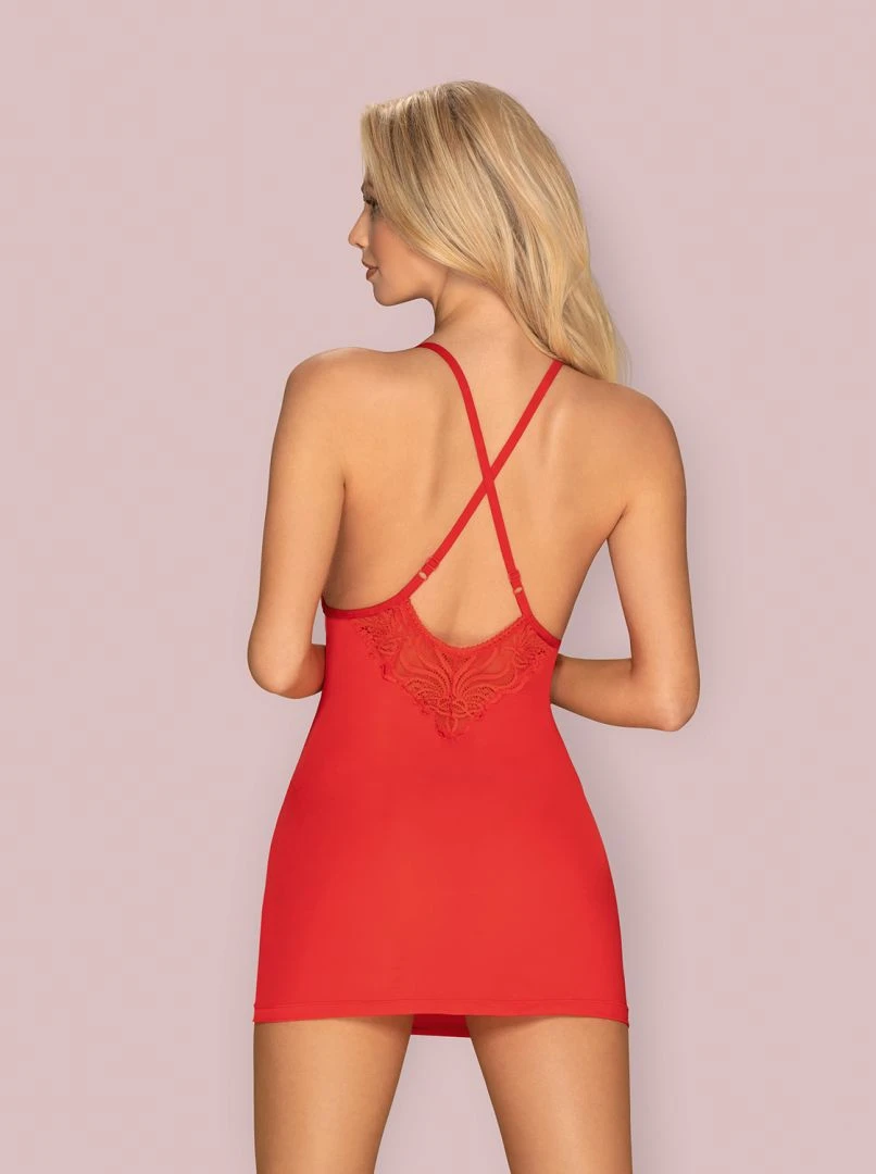 Cette nuisette coquine rouge de la marque Obsessive vous est aussi proposée en coloris noir sur notre site de vente en ligne de prêt à porter et de lingerie coquine.