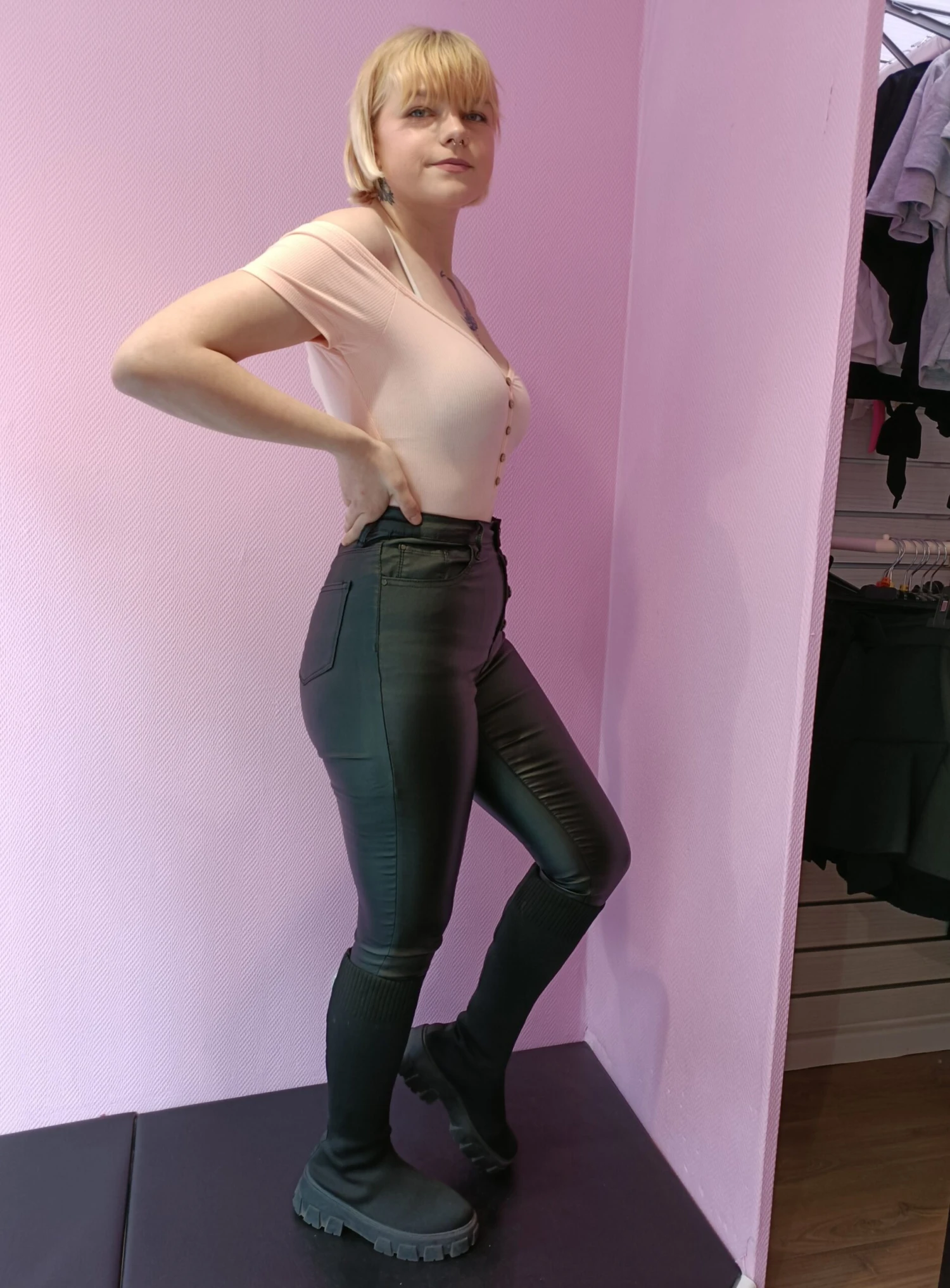 Il est ici porté avec le body rose poudré que vous trouverez également dans notre boutique et sur notre site internet dans la rubrique des hauts pour femme.