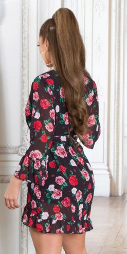Le tissu est composé de 50 % de viscose, 30 % de polyester et 20 % de polyamide, ce qui confère à la robe une coupe élégante et confortable.