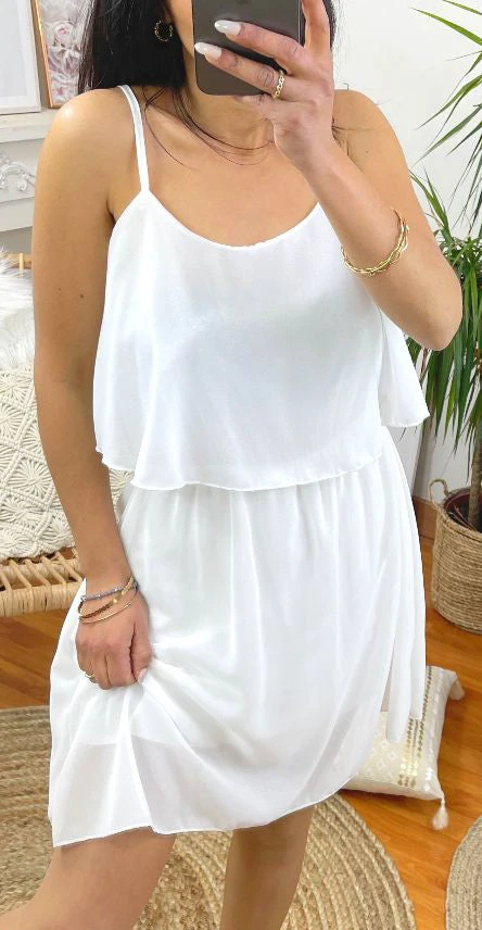 Une robe courte blanche basique. Et ce sont souvent les basiques qui sont les plus tendances.