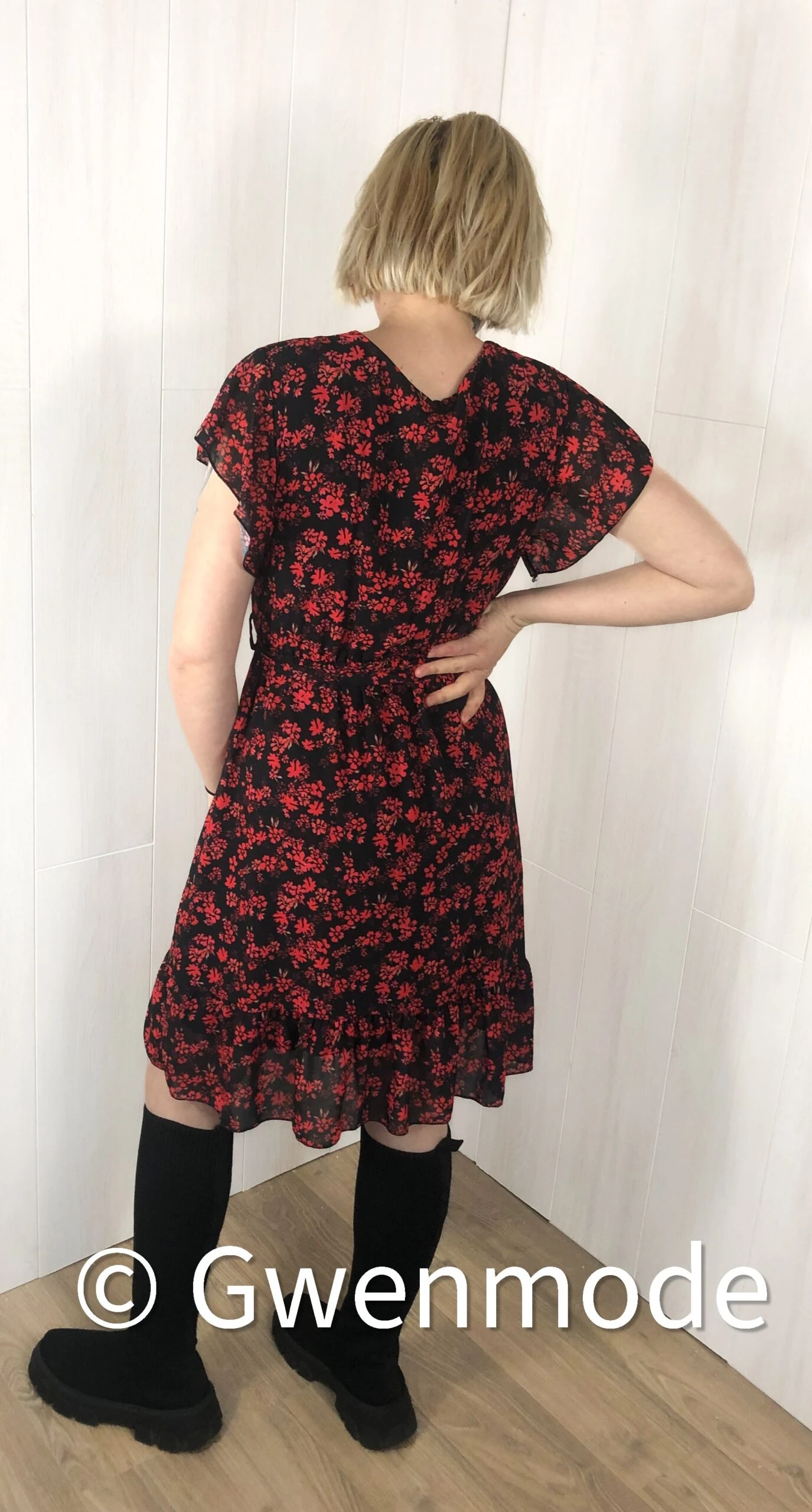Robe en taille unique (36-40) ici portée par Gwendoline qui mesure un peu plus de 1.60m.