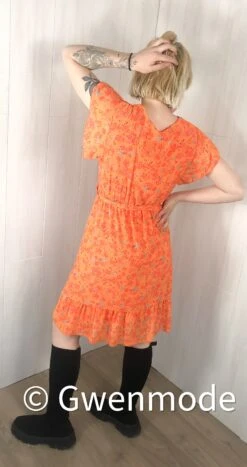 Robe en taille unique (36-40) ici portée par Gwendoline qui mesure un peu plus de 1.60m.