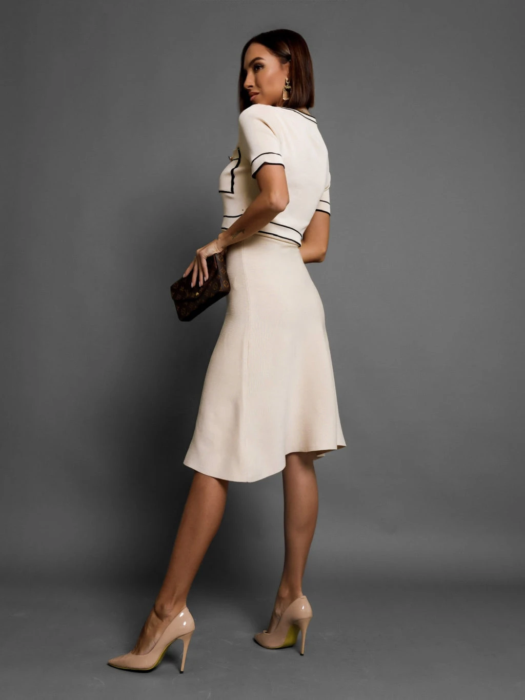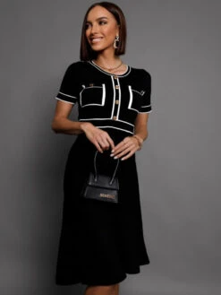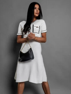 Look absolument chic et vintage. Cette robe se portera avec des collants classiques.